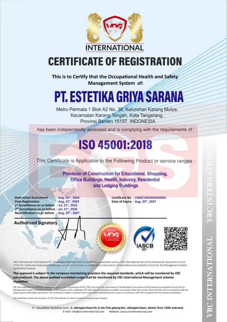 PT. Estetika Griya Sarana (EGS) is a "General Contractor" founded in 2005 with the main foundation of being a professional and quality organization. We have completed various types of projects and earned the invaluable trust of our clients.